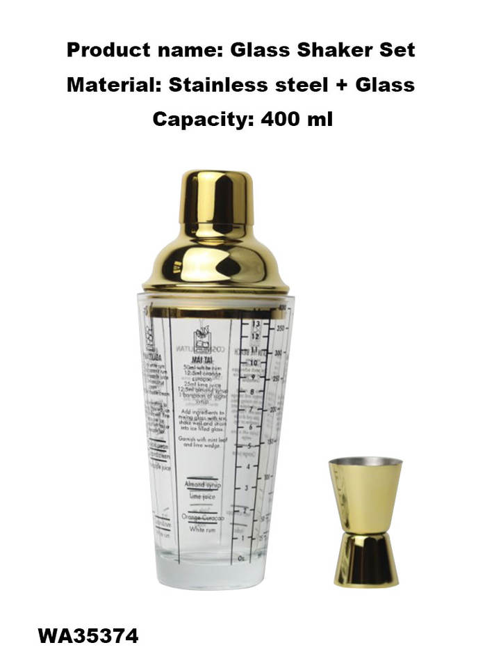 Product name:Glass cocktail shaker gold