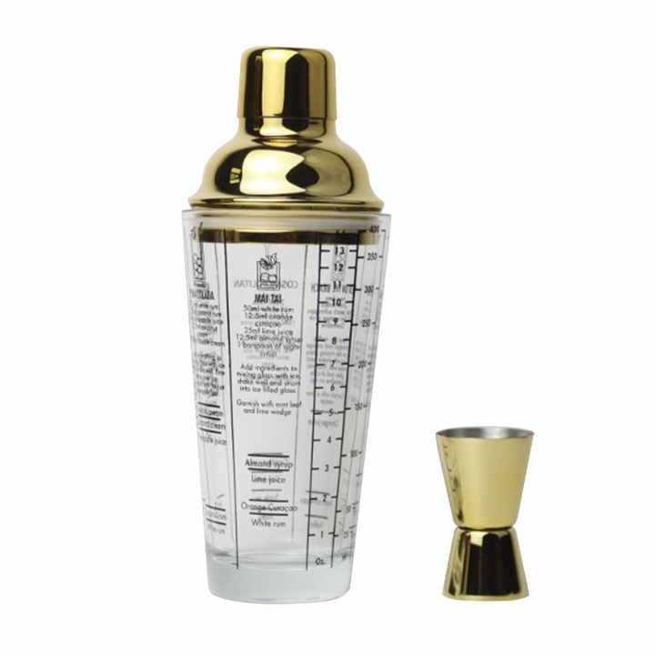 Jigger-Juego de 2 piezas de acero inoxidable dorado para barman, coctelera de vidrio de medición de 400Ml
