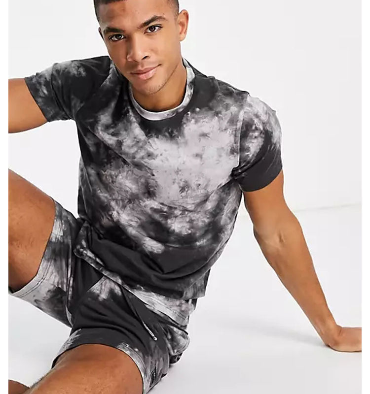 Conjuntos unisex de talla grande con estampado personalizado, conjunto de 2 piezas de algodón y poliéster con efecto tie-dye, conjunto de camiseta de cuello redondo para hombre, para verano.