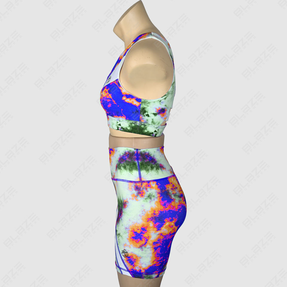 Impreso Popular Impact Shorts Gym Set Mujeres Un hombro Sujetador deportivo con sin costuras Scrunch Butt Shorts 2 piezas Yoga Set Algodón