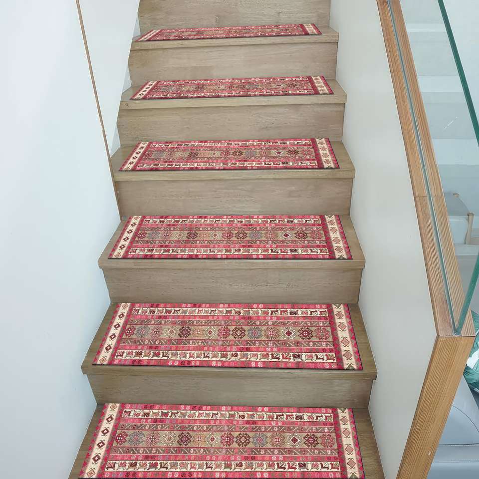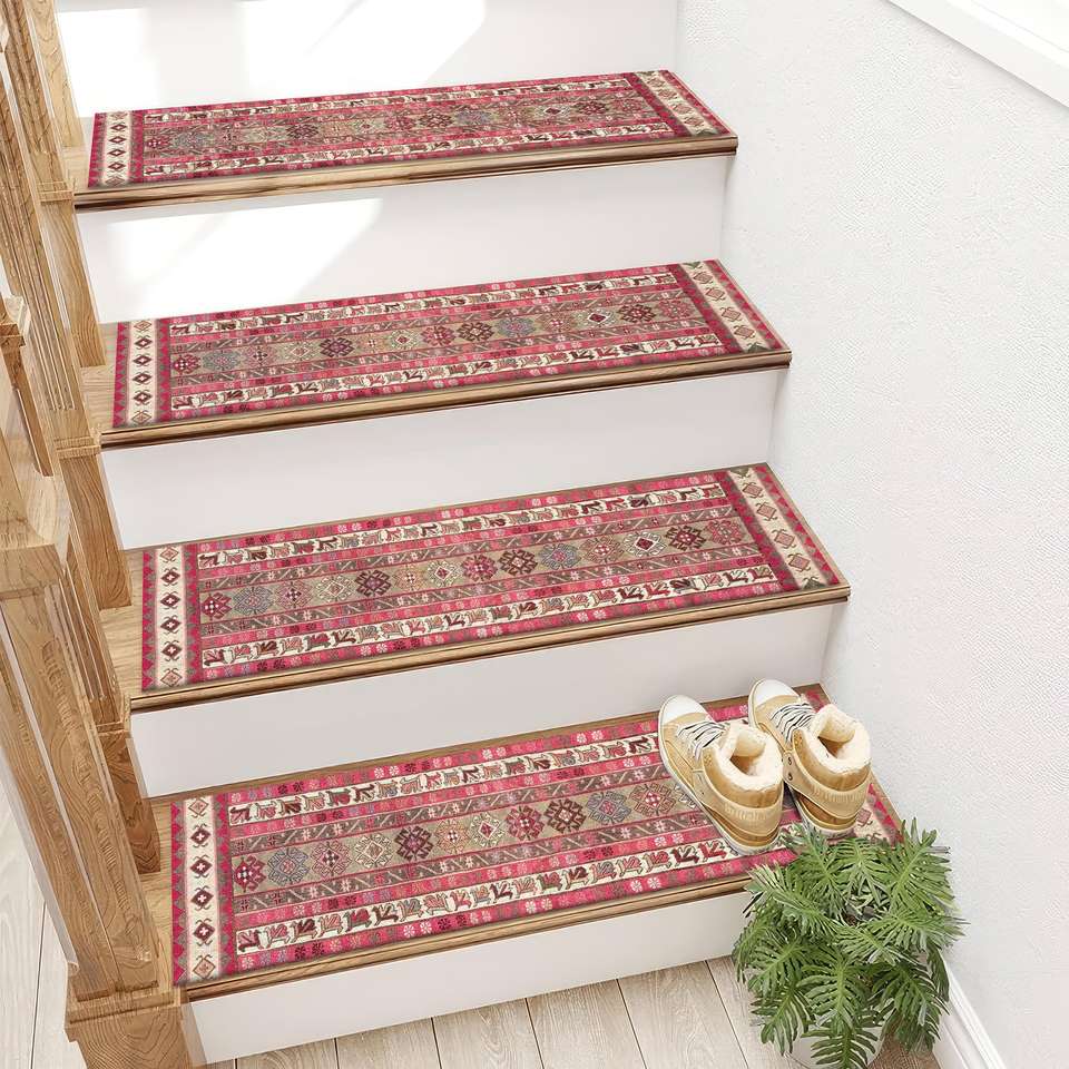 Alfombra Estampada - Alfombra Vintage con Diseño de Escalones, Lavable, Ideal para Regalo, Alfombra Estampada Acogedora