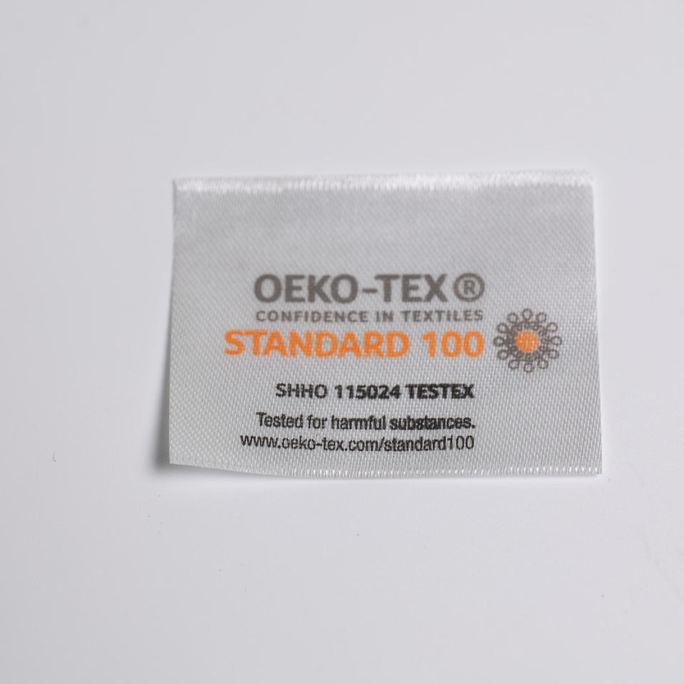 Etiqueta de tela de lujo de poliéster lavable impresa Etiqueta de satén de marca privada con logotipo en relieve y sensación de tapa dura