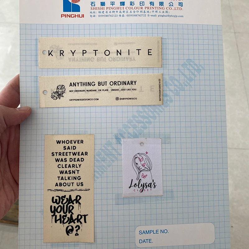 Nombre del producto:Tela tejida Ropa Logotipo Etiqueta colgante Lona de algodón Etiquetas personalizadas de tela