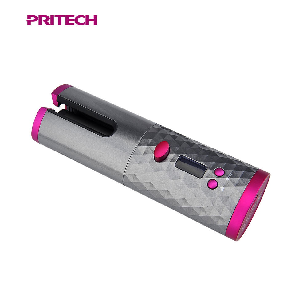 Pritech Mini inalámbrico recargable de Control de temperatura automático inalámbrico rizador con Lcd de pantalla inteligente