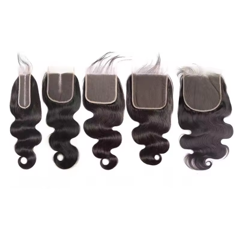 Extensiones de Cabello Natural Indio Virgen de Prithvi Hair Exports, Precio al por Mayor, Extensiones de Cabello con Cierre 5x6, Parte Media, Textura Remy Natural