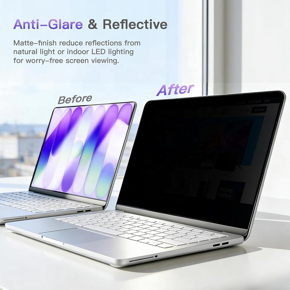 Grosor de 0.4 mm: Con un grosor de 0.4 mm, este protector de pantalla de privacidad es lo suficientemente delgado como para mantener el tacto y la sensación originales de la pantalla mientras proporciona una protección efectiva.
