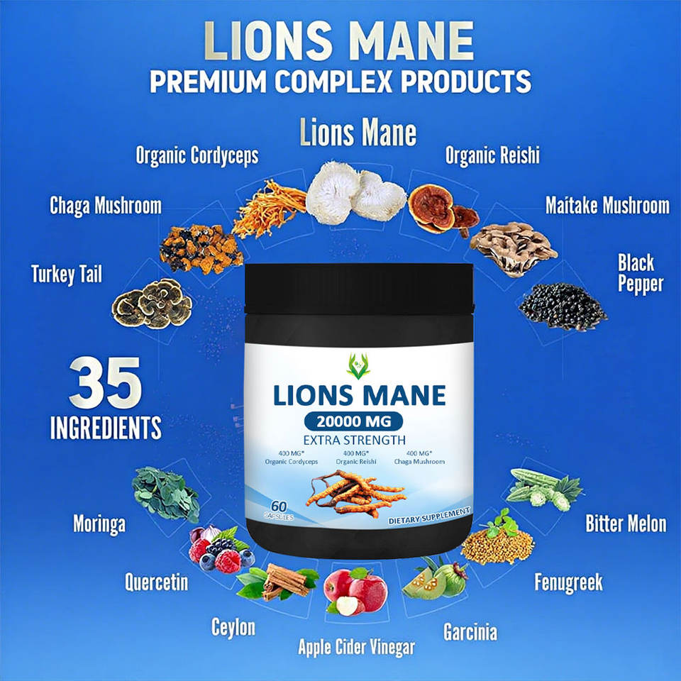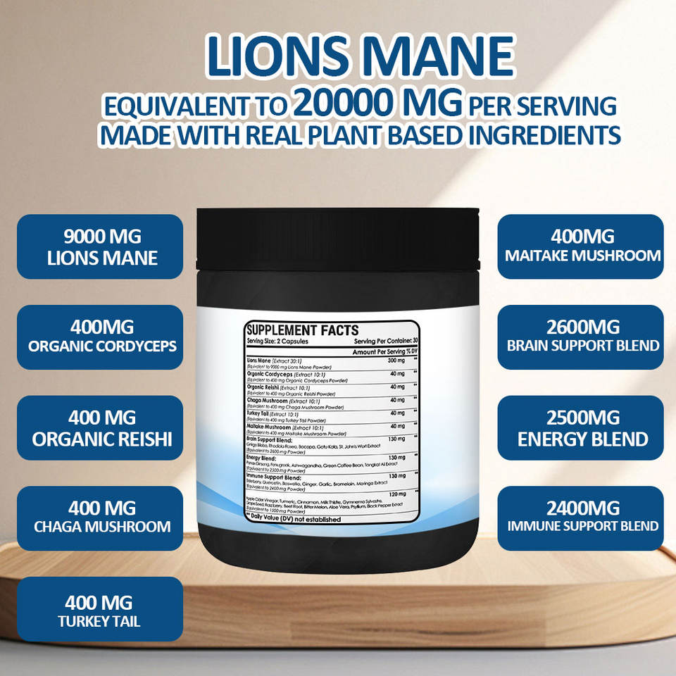 Ingrediente principal:Mane León, Seta de Maitake, Cola de Turquía, Reishi orgánico, Mezcla de apoyo Immue, Mezcla energética, Mezcla de apoyo cerebral
