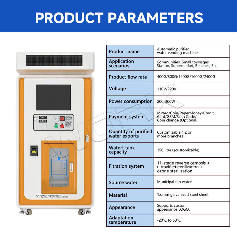 Máquina Expendedora de Agua de Acero Galvanizado con Ósmosis Inversa Automática 24H, Personalizada para Empresas, con Forma Personalizada, Multi-Pago, 60L/H