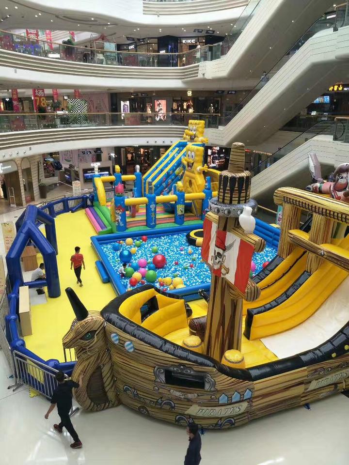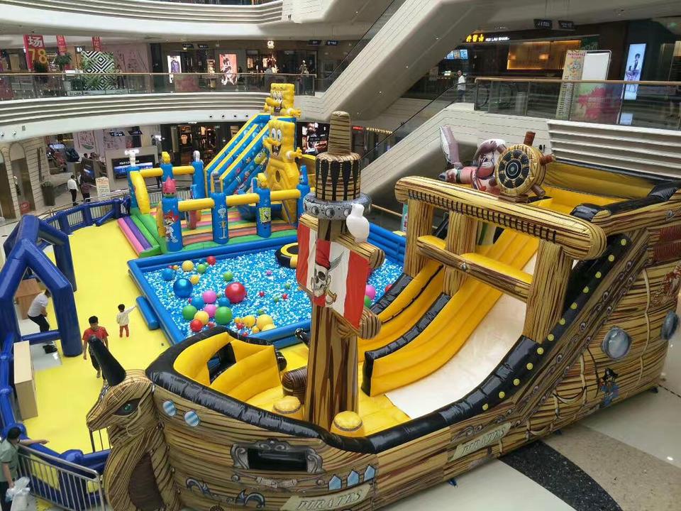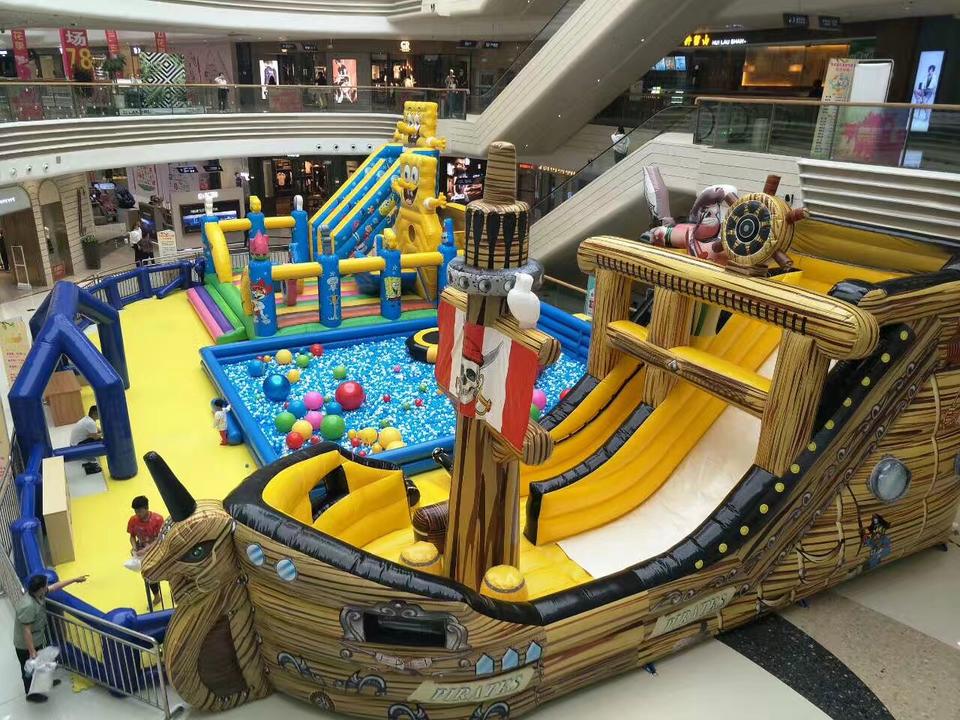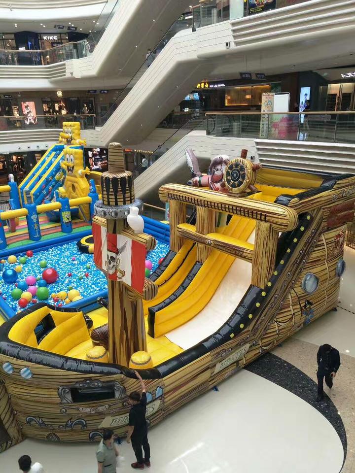 Personalizada inflable diversión ciudad temática Bob Esponja y PIRATA barco niños paraíso puentes inflable Casa de rebote