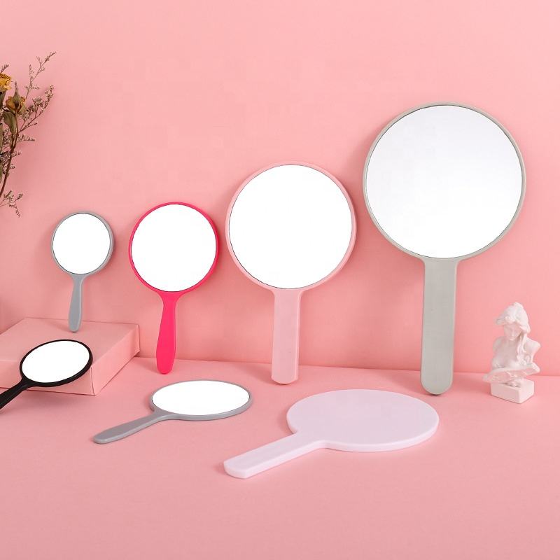 Espejo de mano de plástico ABS con logotipo de marca para mujer, espejo redondo pequeño para maquillaje, personalizado