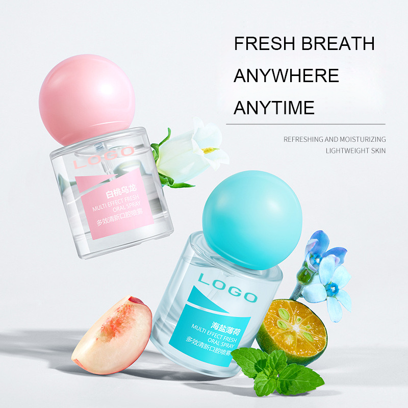 Spray Bucal Portátil de 15ml con Etiqueta Privada, Sabor a Sal Marina, Menta, Melocotón Blanco y Té Oolong, para el Mal Aliento