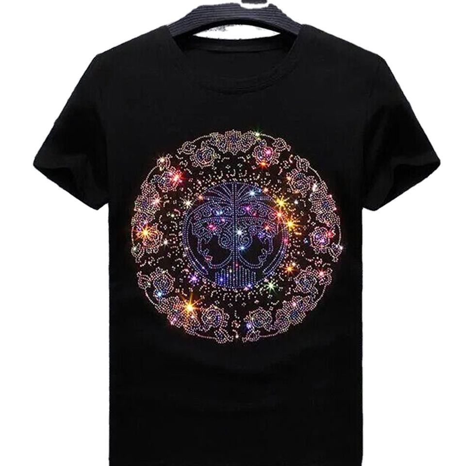 Camiseta de algodón 100% con pedrería para hombre, de marca propia, corte holgado, producto de alta gama, talla grande.