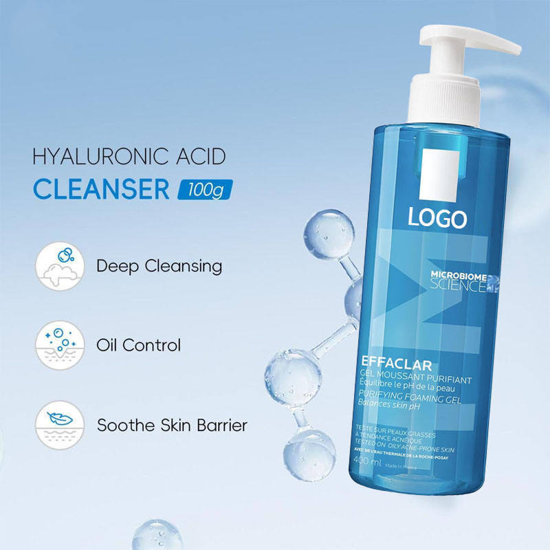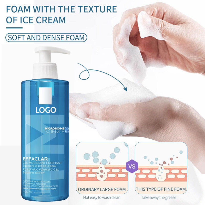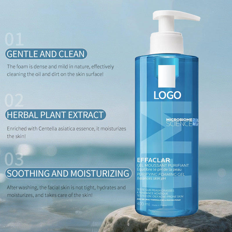 Etiqueta privada 400mL Limpiador de gel de lavado de cara en espuma purificante suave para piel grasa y sensible propensa al acné