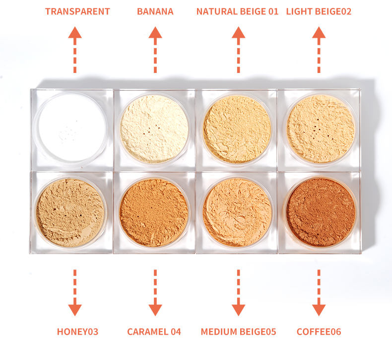 Etiqueta privada 8 colores Belleza facial Polvo suelto desnudo Maquillaje Polvo de ajuste translúcido impermeable de larga duración