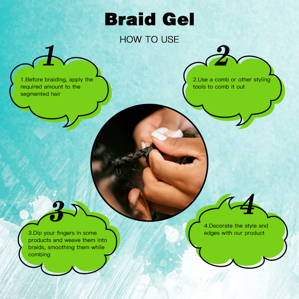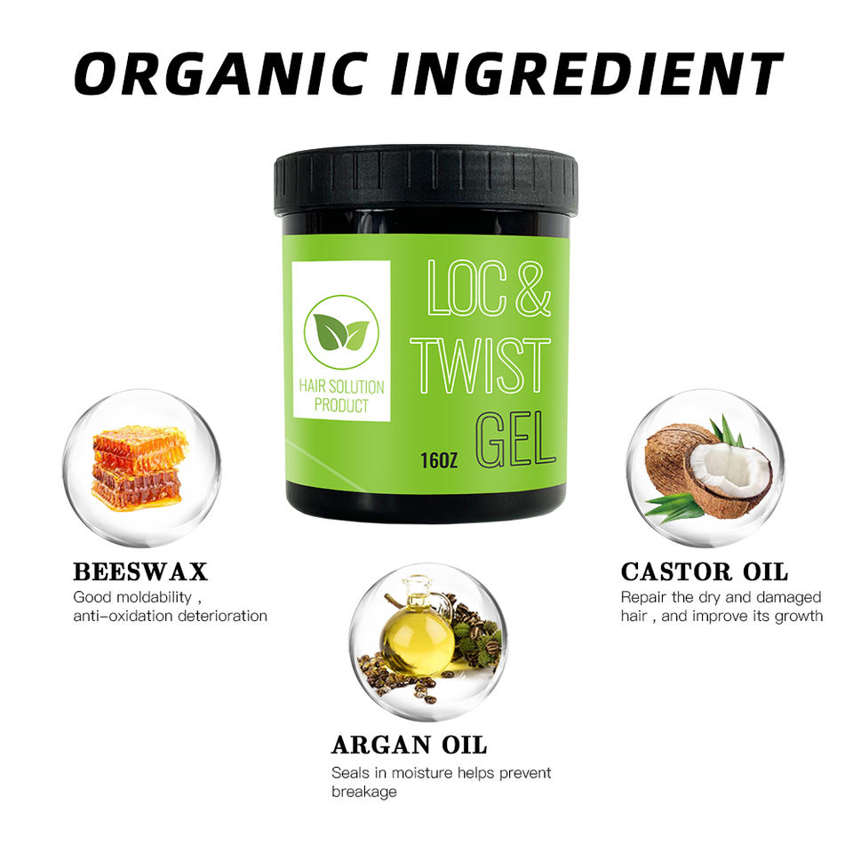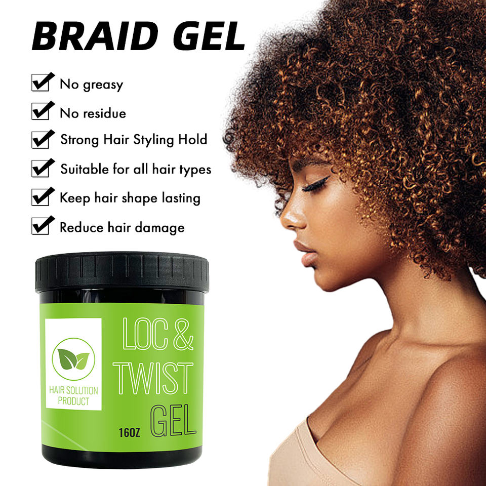 Etiqueta privada Trenza Gel Extra Hold Cuidado del cabello de los hombres y Styling Loc Gel para hombres Trenza Loc y Twist Gel no se volverá blanco
