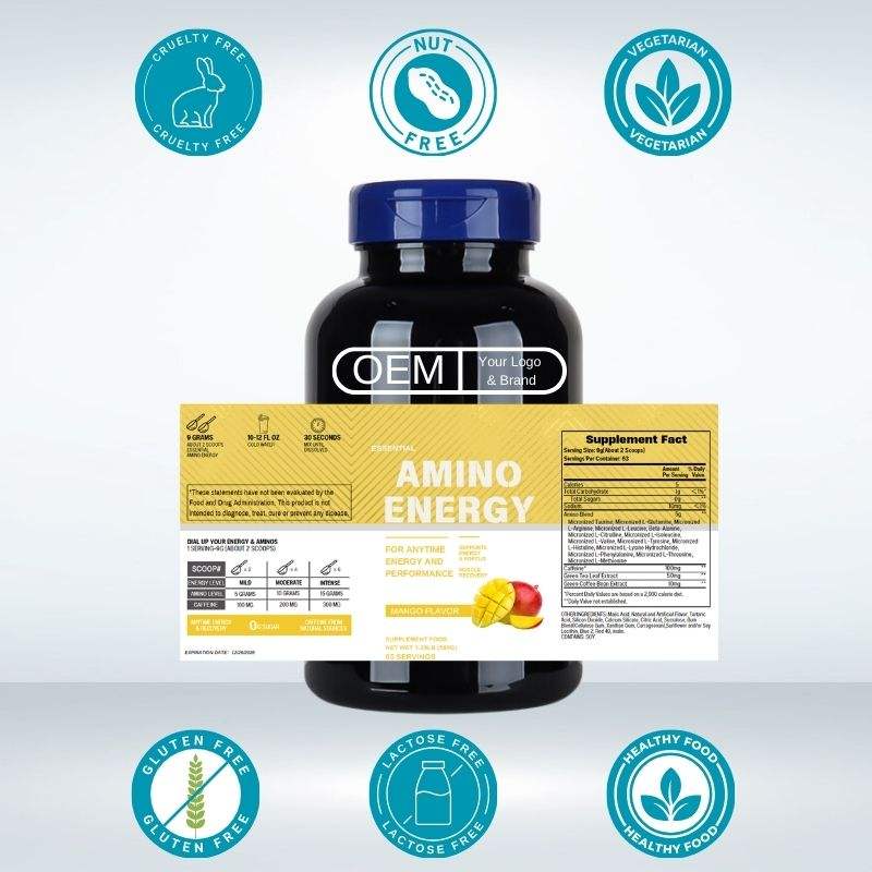 Cápsulas de aminoácidos de cadena ramificada de etiqueta privada, suplemento sanitario para el crecimiento muscular de adultos, mujeres embarazadas, atletas deportivos