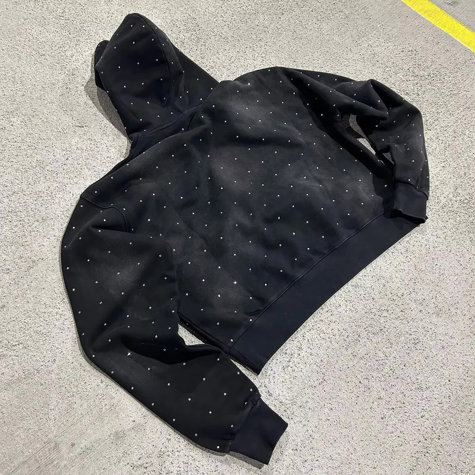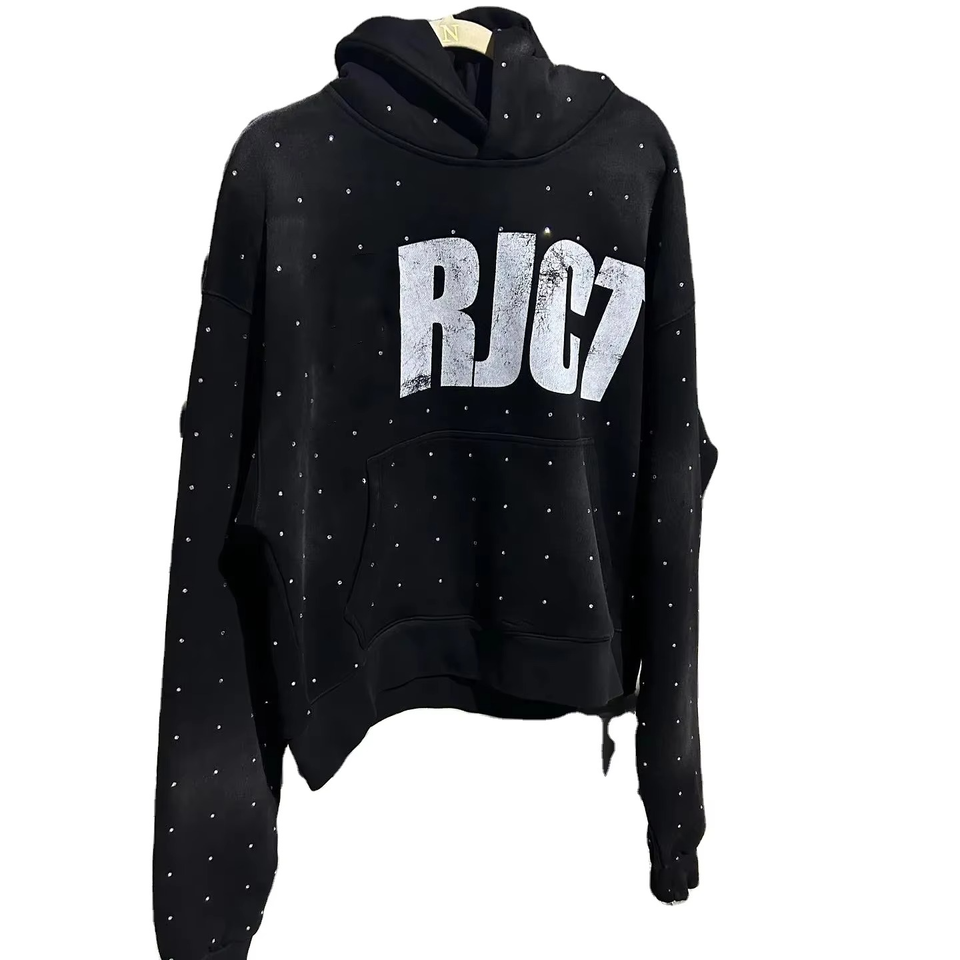 Etiqueta privada Logotipo personalizado Diamante de imitación Ropa de otoño Sudadera con capucha Impresión personalizada Carta Sudadera con capucha de diamantes de imitación para Mujeres Hombres