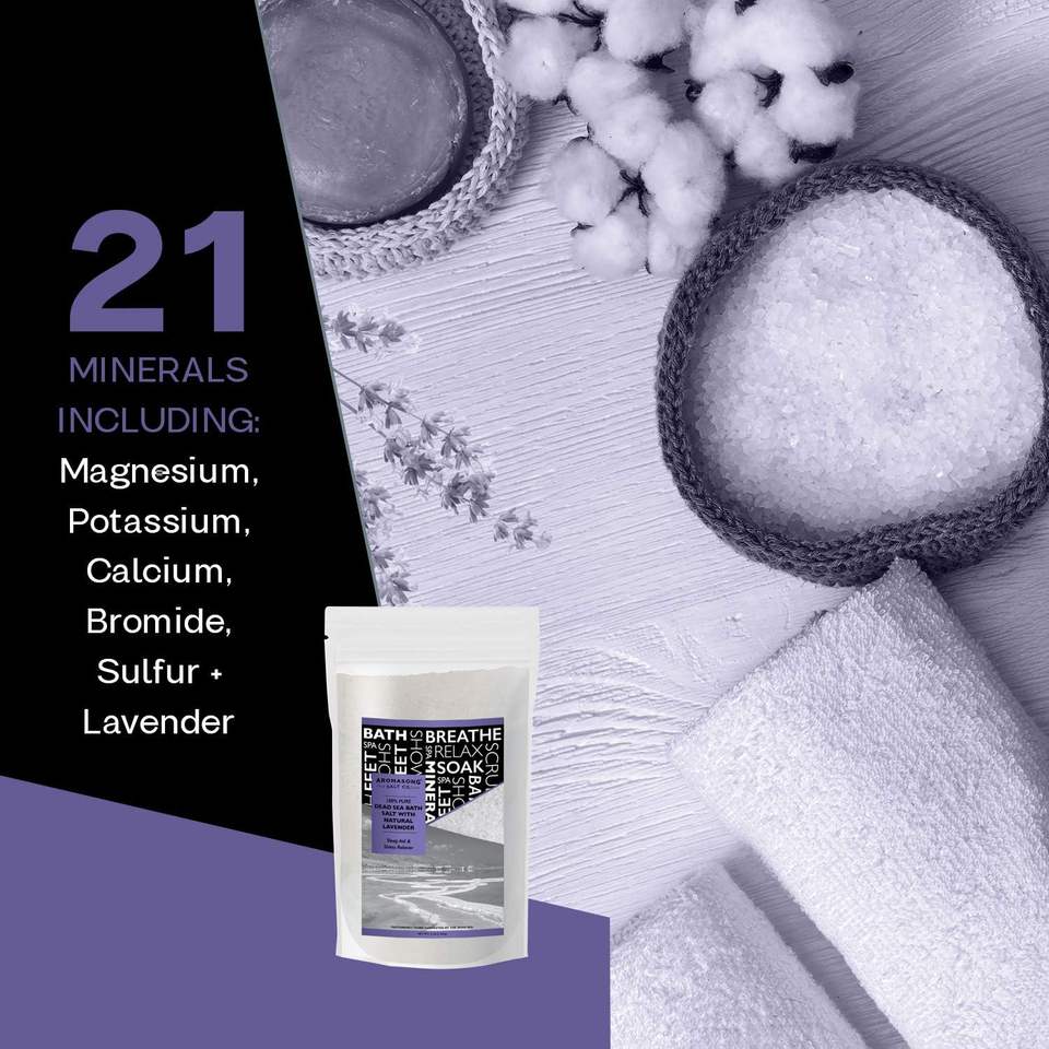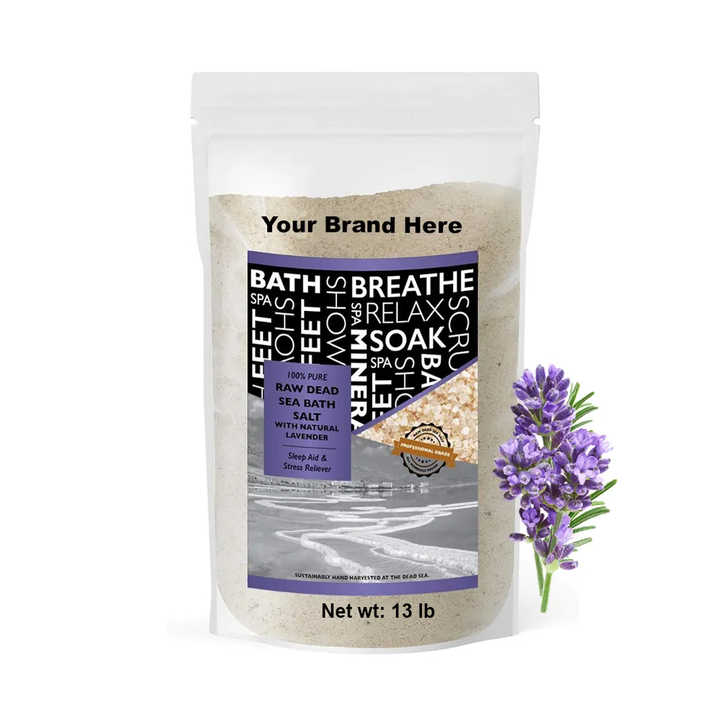 100% Natural 13lb RAW Sal de baño del Mar Muerto Etiqueta privada con lavanda y logotipo personalizado Exfoliante Cuerpo Ritual Sal Hecho en EE. UU.