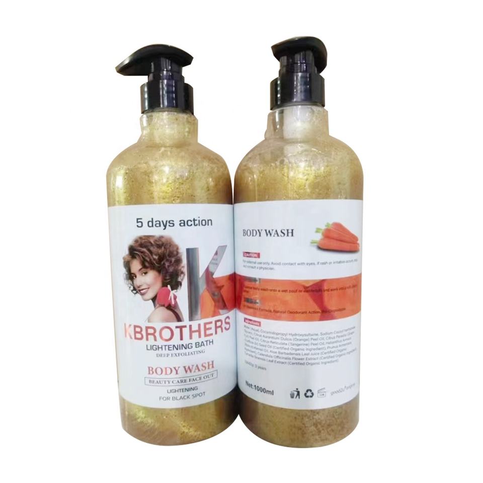 Etiqueta privada Exfoliantes profundos K Brothers Body Wash Belleza Cuidado DE LA PIEL 5 días Acción Aclarante Baño Hidratante Aclarante 1000ML