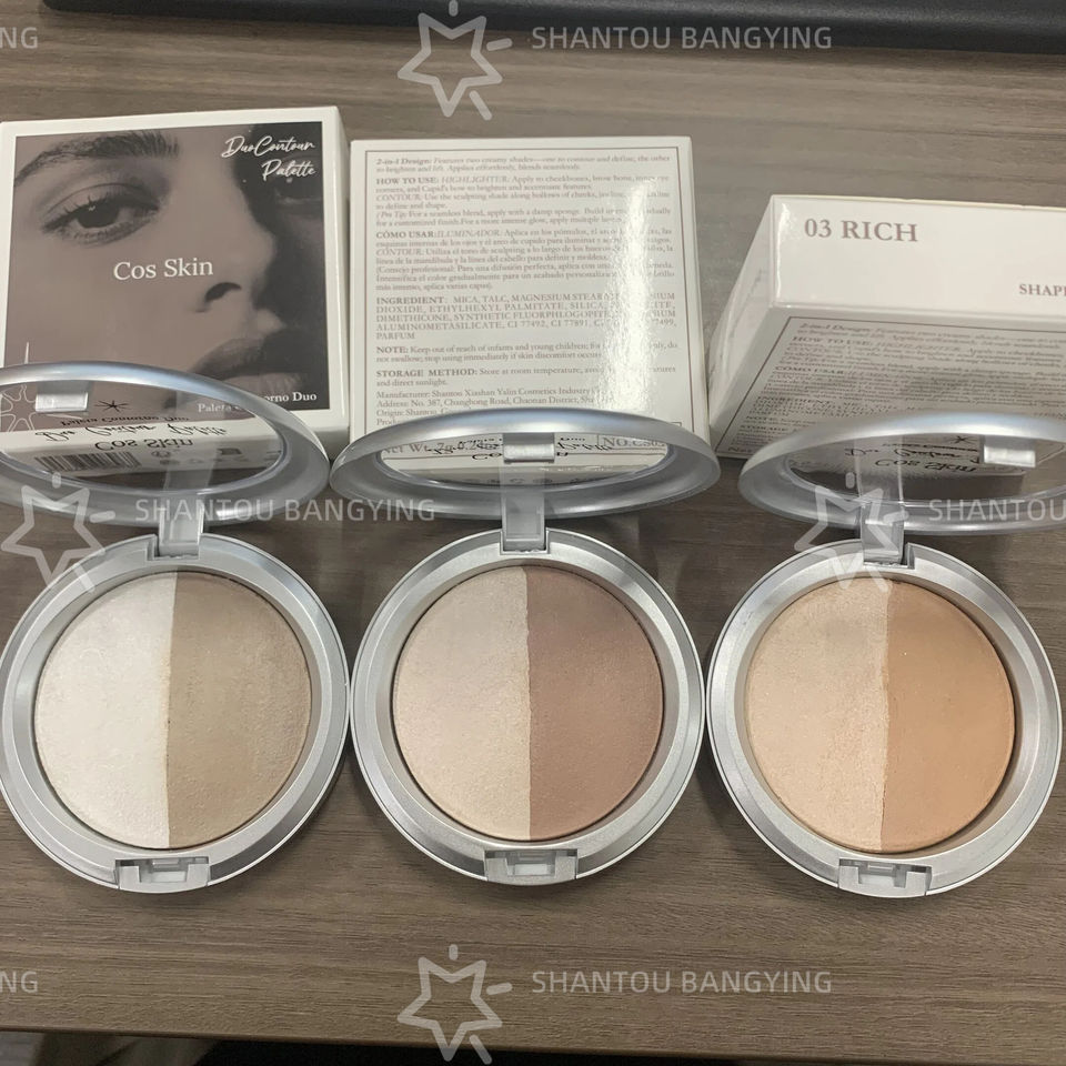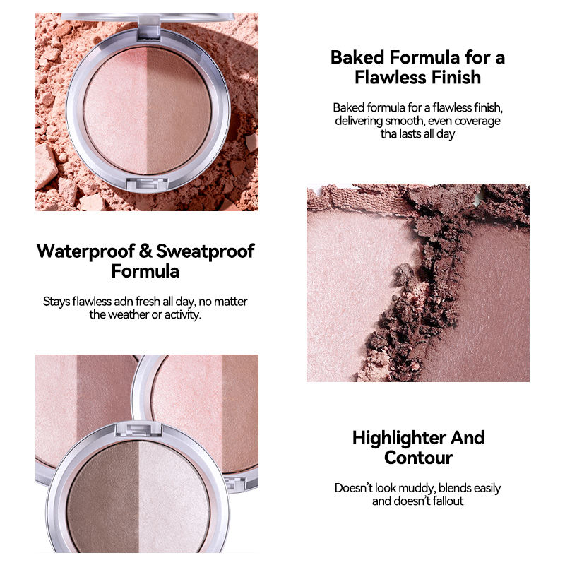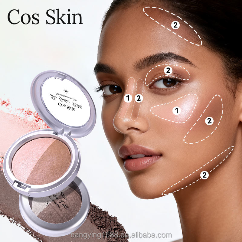 Paleta de Maquillaje 2 en 1 de Bronceador y Iluminador Compacto Horneado con Brillo para Contorno Facial de Marca Privada