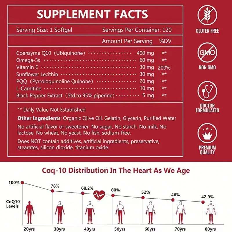 Suministro de fábrica de etiqueta privada Coenzima Q10 Softgels para la producción de energía de la salud del corazón CoQ10 Softgels120pcs