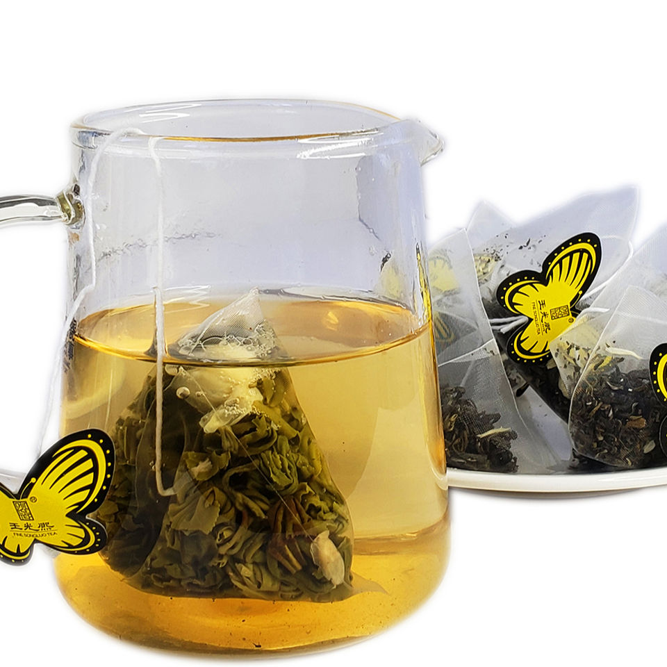 Bolsa de té piramidal de té verde Jazmín de muestra gratis de etiqueta privada para beneficios saludables, té verde chino corporal adelgazante