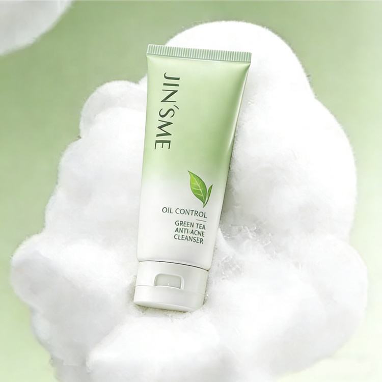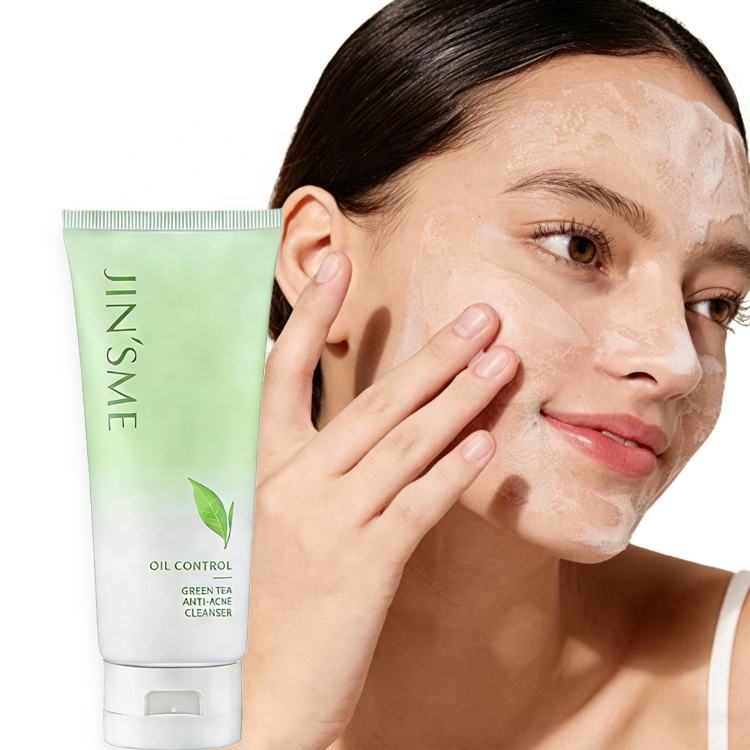 Limpiador Facial Espumoso de Té Verde Anti-Acné de Marca Privada, Blanqueador e Hidratante, Controla la Grasa, Cierra los Poros, Espuma Abundante, 100g