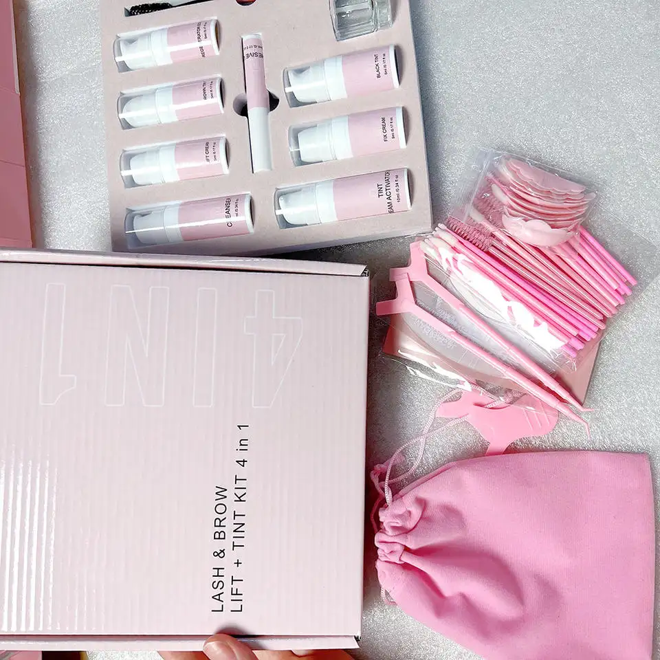 Kit de elevación rápida de pestañas con queratina de marca propia, permanente para pestañas y cejas, laminación profesional para cejas, tinte, kit de laminación para cejas 4 en 1