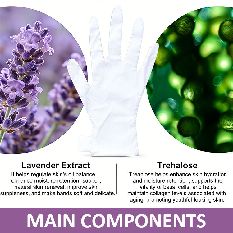 Guantes de Cuidado de Manos con Extracto de Lavanda de Marca Privada, Mascarilla Suave y Delicada para Spa de Manos con Glicerina y Trehalosa