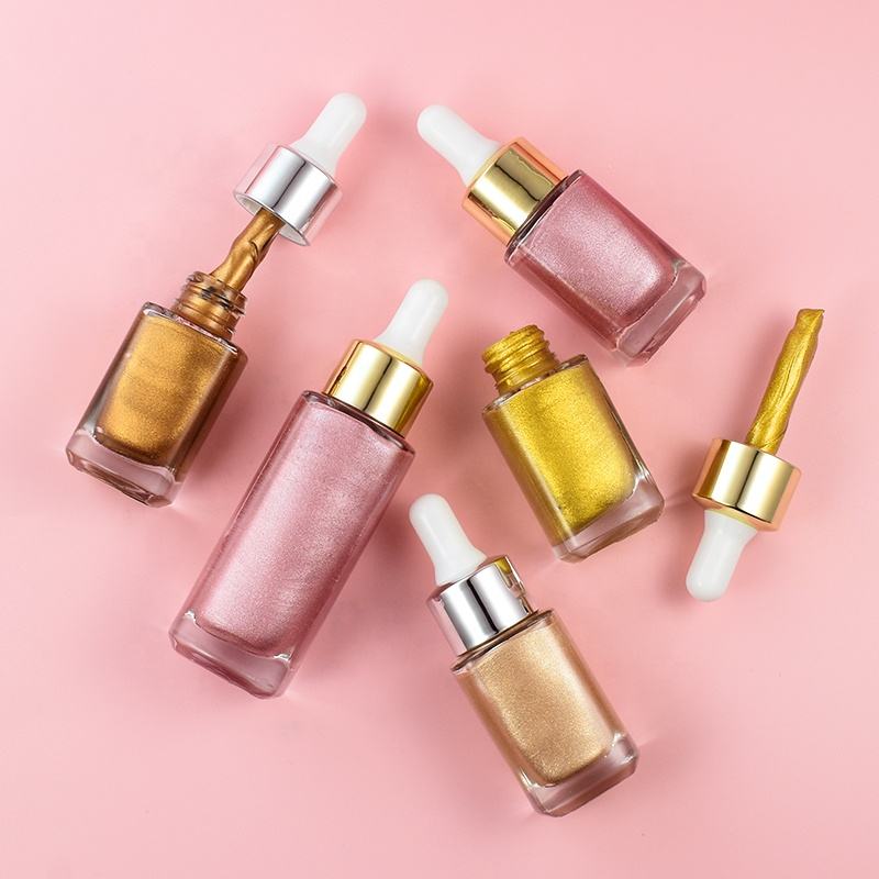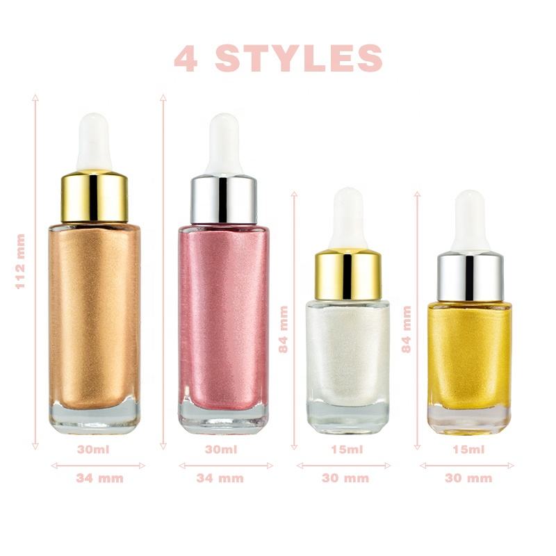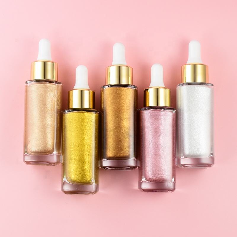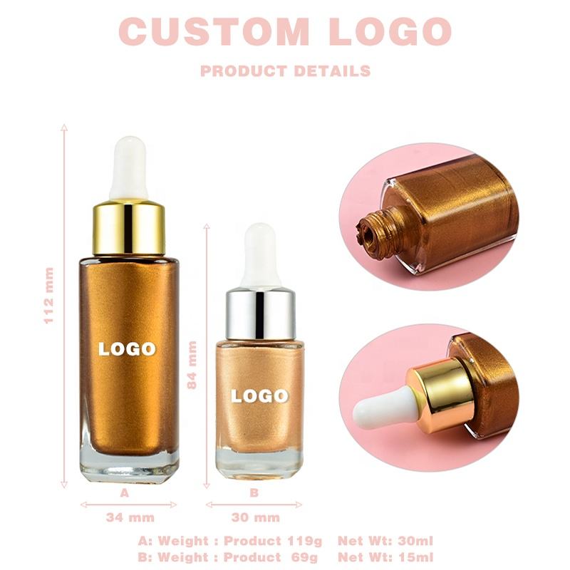 Etiqueta privada Resaltador en crema brillante de larga duración Bronceador de alto brillo y gotas resaltadoras Maquillaje para rostro y cuerpo