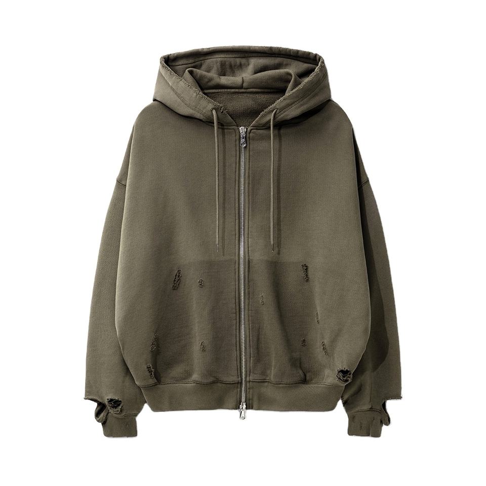 Sudadera con Capucha y Cremallera para Hombre, Estilo Desgastado, Hombros Caídos, Marca Privada, MOQ Bajo, Venta Caliente, Hecho en Pakistán, Talla Grande, Unisex, Ropa Casual