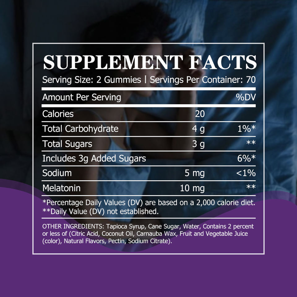 Gomitas de Melatonina de Marca Privada que Promueven el Sueño, Ayudan a Dormir Más Rápido, a Permanecer Dormido por Más Tiempo y a Despertar Refrescado