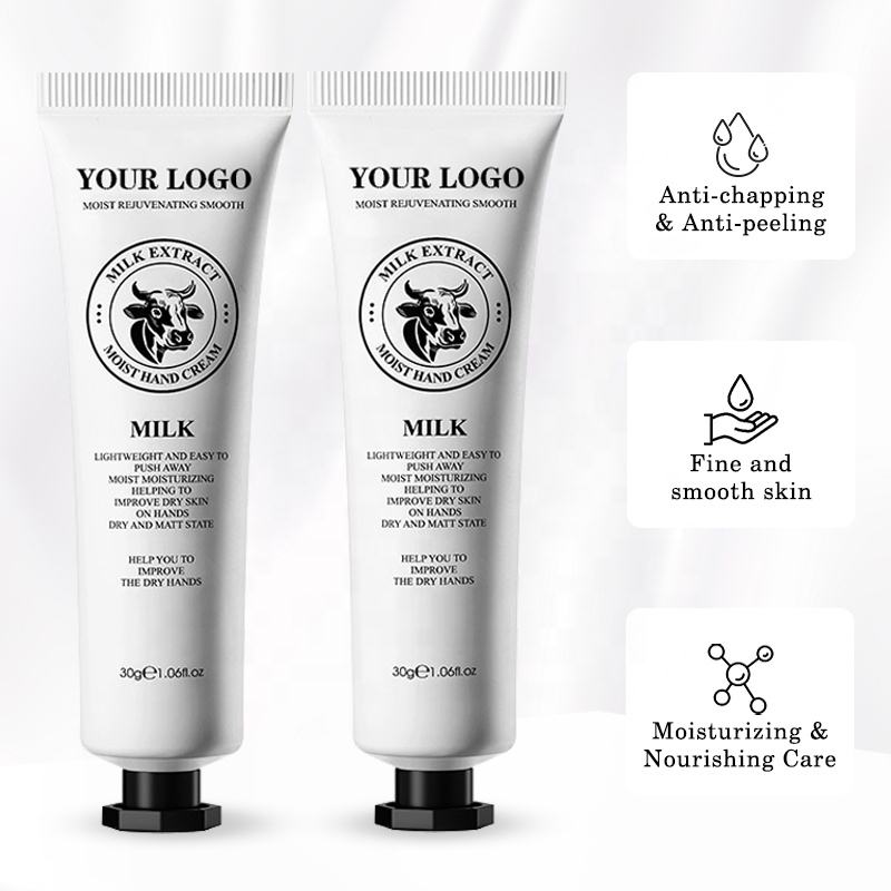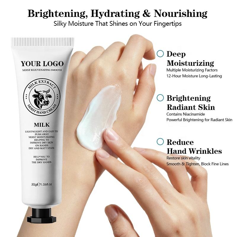 Crema de Manos de Leche de Marca Privada, Crema Hidratante y Nutritiva, Crema de Manos con Manteca de Karité y Colágeno, Loción Blanqueadora para Manos, Tamaño de Viaje, OEM