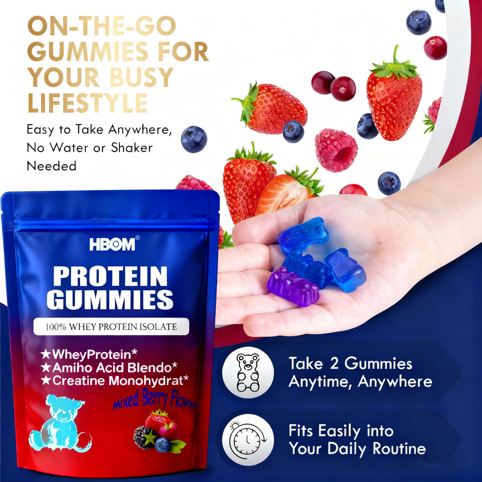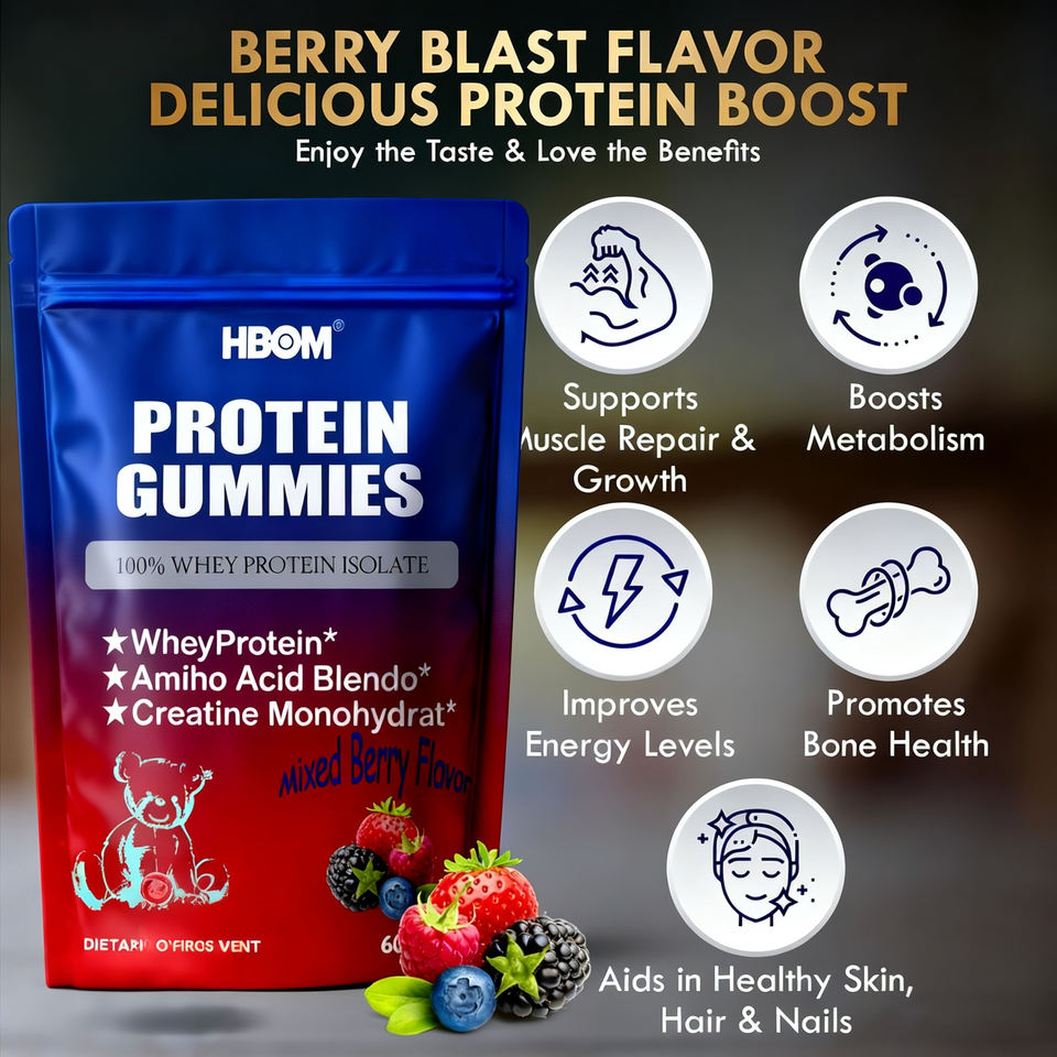 Proteína de Suero de Leche Aislada para Desarrollo Muscular de Marca Privada, Gomitas Altas en Proteínas para Bajas Calorías, Sin Edulcorantes Artificiales