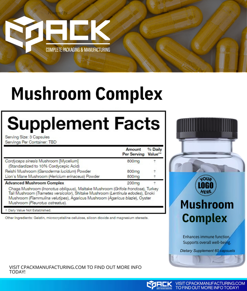 Cápsulas de suplementos dietéticos de complejo de setas de etiqueta privada OEM, excelente calidad, fabricadas en EE. UU. para adultos, Mercado Mayorista