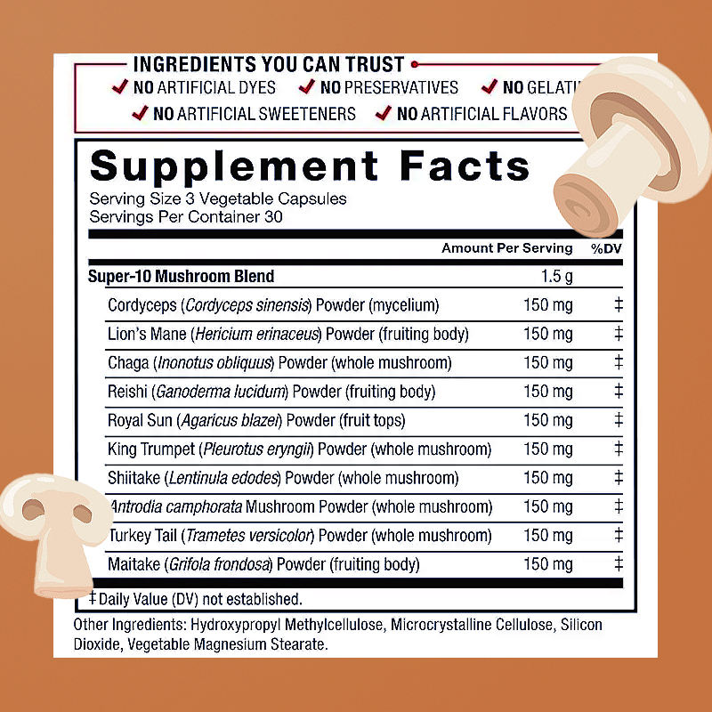 Ingrediente principal:Cordyceps, Mane de León, Chaga, Reishi, Sol real, Rey Trompeta, Shiitake, Antrodia, Cola de Turquía, Por Maitake