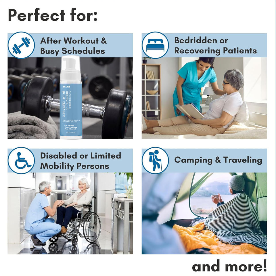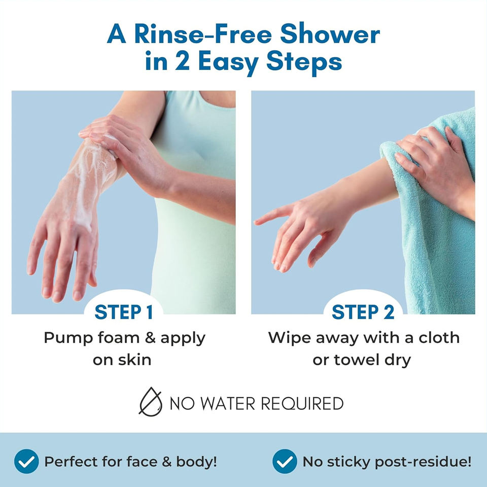 Gel de Ducha Natural de Marca Privada con Aloe, Sin Residuos, Sin Enjuague, Espuma Limpiadora sin Agua para Personas Mayores y Campamentos