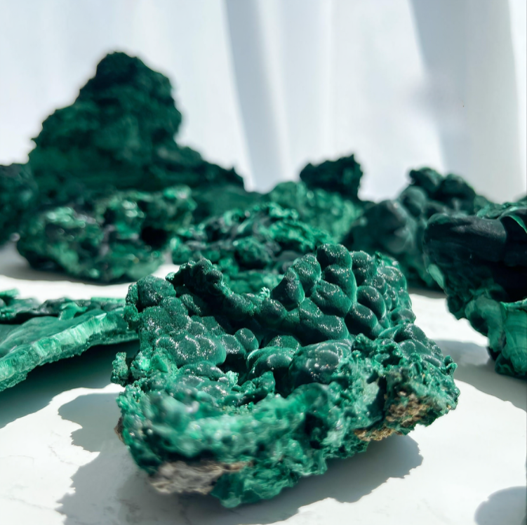 Nombre del producto:Malaquita en Bruto: Especímenes y Collares