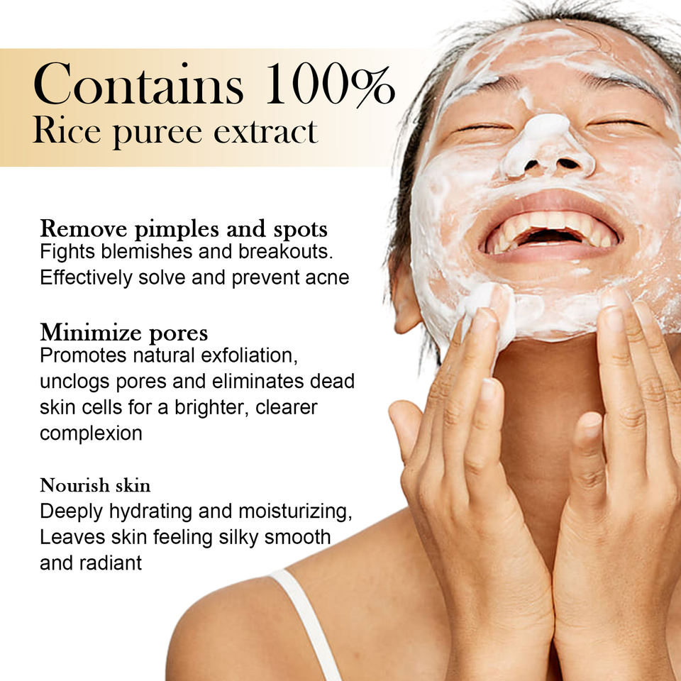 Limpiador Facial de Arroz Natural de Marca Privada, Antienvejecimiento, Exfoliante, Reduce Poros, Espuma Limpiadora Facial que Combate Imperfecciones y Granos