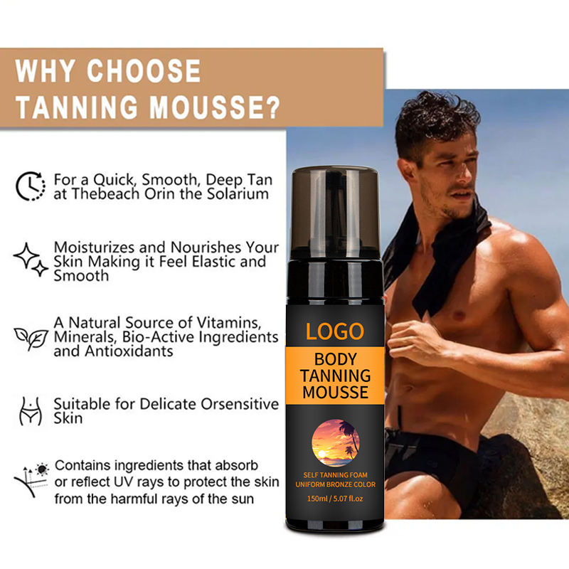 Etiqueta privada Loción de protección solar natural Espuma autobronceadora saludable Bronceador corporal Manchas oscuras Mousse de bronceado de la piel