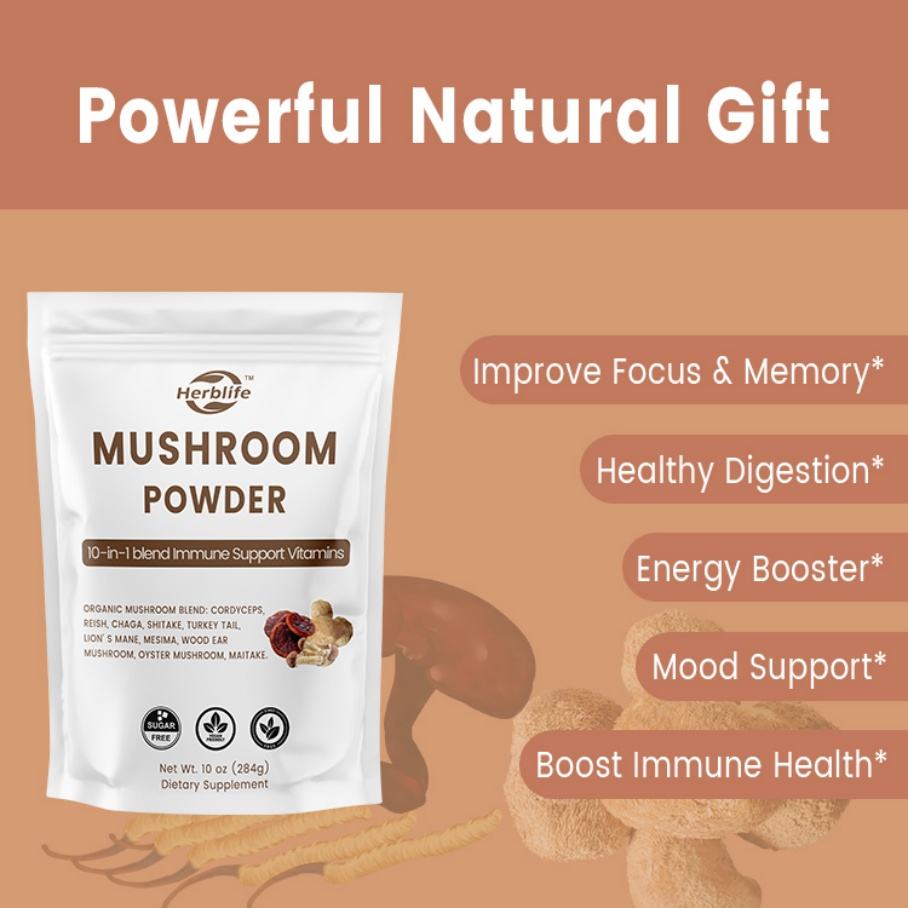 Suplemento de Polvo de Hongos Orgánicos de Marca Privada OEM, Mezcla Activa 10 en 1, Apoya la Salud Inmunológica, Energética y Cerebral