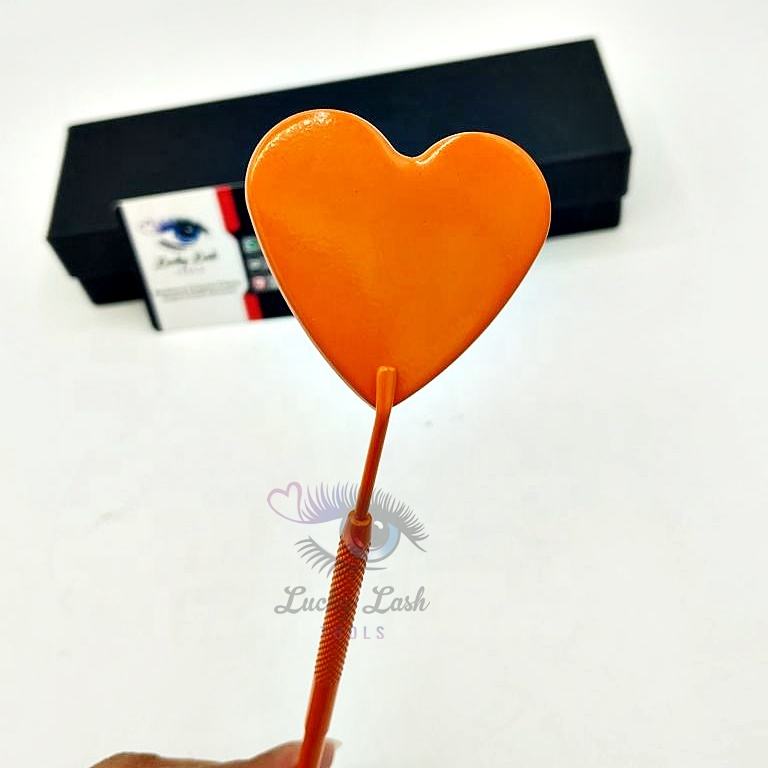 Etiqueta privada Naranja Acero inoxidable Espejo de pestañas en forma de corazón Logotipo personalizado Herramienta de belleza sostenible reutilizable en caja