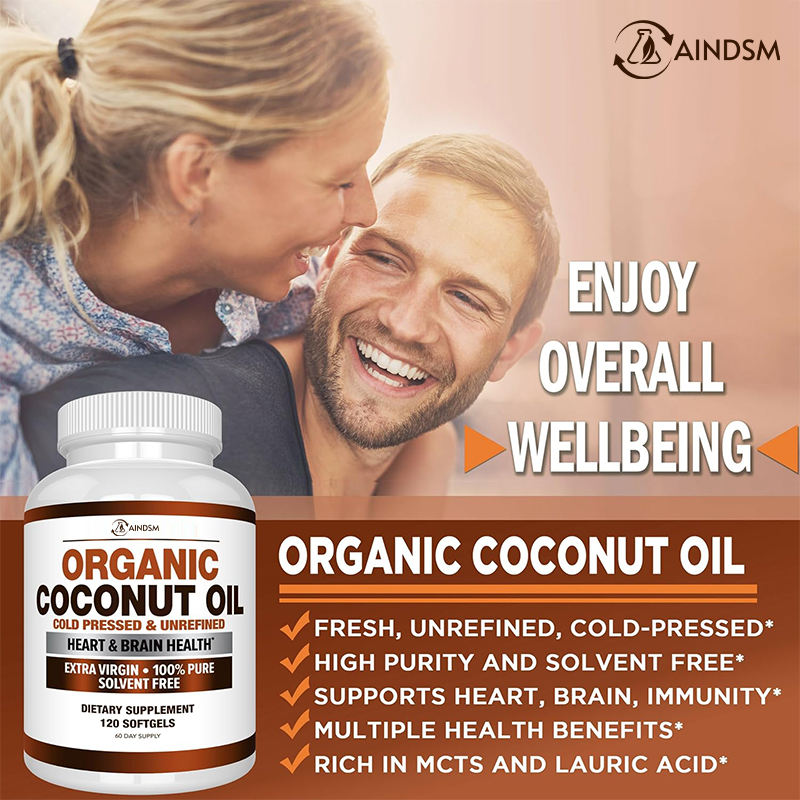 Cápsulas de Aceite de Coco Virgen Orgánico de Marca Privada, Apoyan la Salud Intestinal y Mejoran la Inmunidad para Adultos, No Apto para Mujeres Embarazadas
