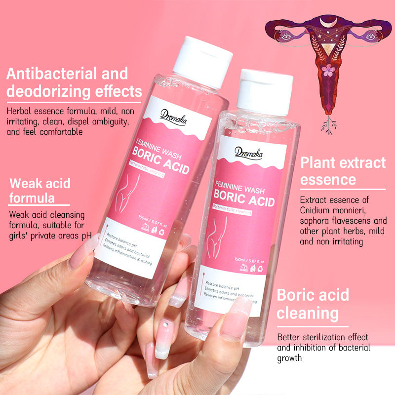 Gel limpiador íntimo femenino (yoni) con ácido bórico, cuidado higiénico equilibrante del pH, etiqueta privada