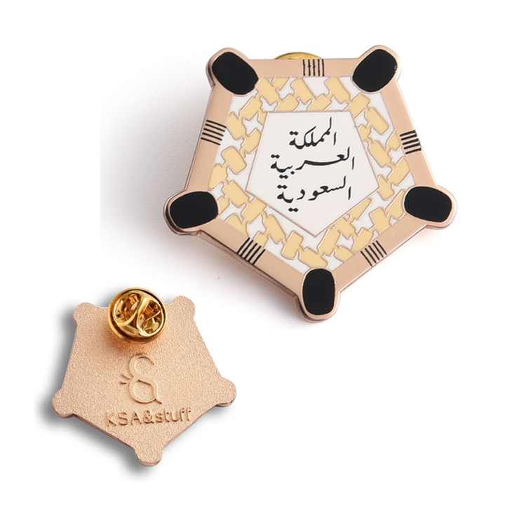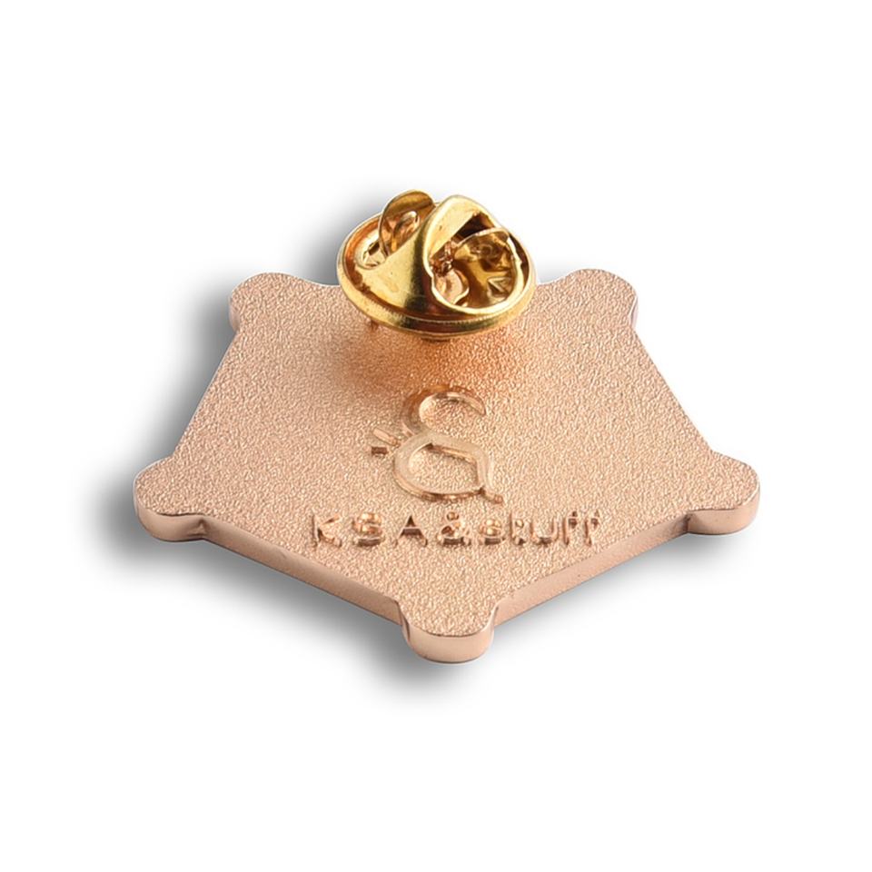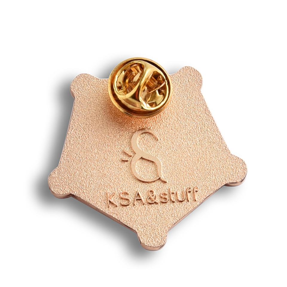Pin de Esmalte Suave Dorado con Patrón de Grafiti Pentagonal de Marca Privada, Insignia Metálica Personalizada