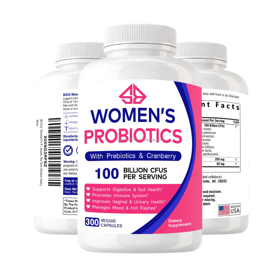 Cápsulas Probióticas de Marca Privada para la Salud Vaginal e Intestinal, Complejo de Enzimas de Arándano, Extractos Herbales, 300 Cápsulas para Mujeres, Certificado GMP, Inmunidad