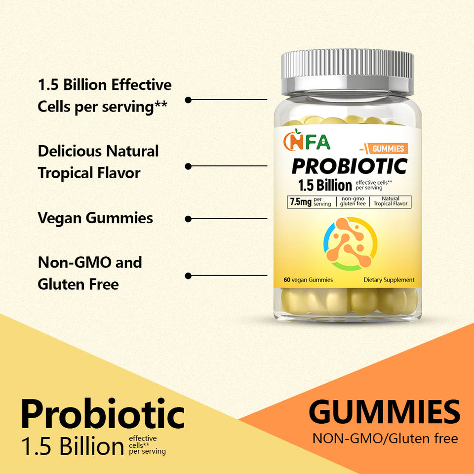 Las gomitas probióticas de etiqueta privada mantienen el equilibrio de la microflora intestinal y promueven la absorción de nutrientes, caramelos de goma