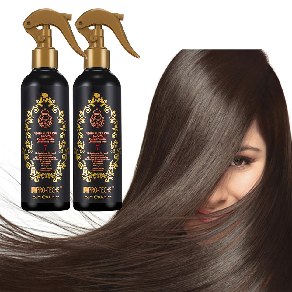 Spray Protector Térmico Capilar de Queratina con Rosa de Marca Blanca, Acondicionador Sin Enjuague, Aminoácidos y Anticaspa