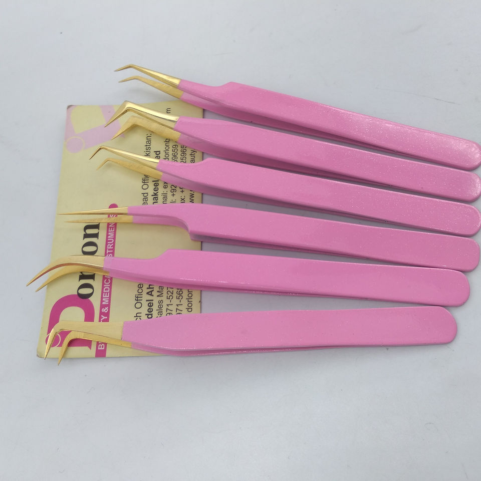 Pinzas de volumen de punta de oro Pinzas de pestañas rosadas