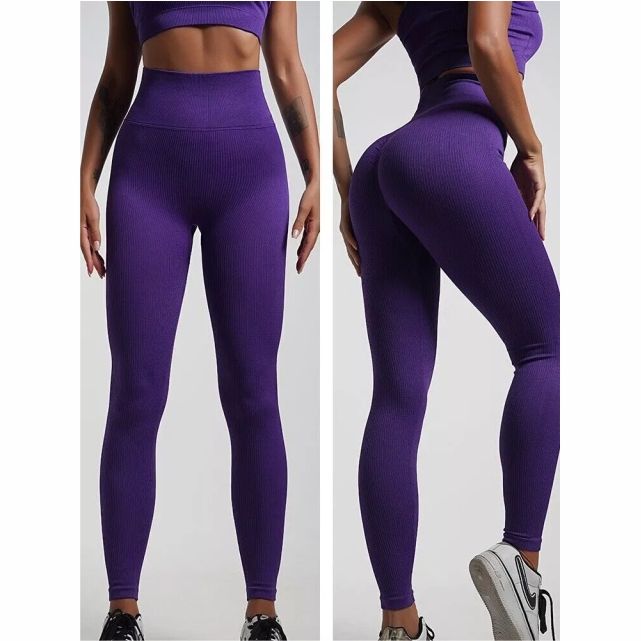 Conjunto de Yoga y Fitness de Talla Grande, Marca Privada, Sólido, Suave, Sin Costuras, Pantalones Cortos Acanalados Elásticos, Cintura Elástica, Leggings de Yoga Personalizados para Mujer